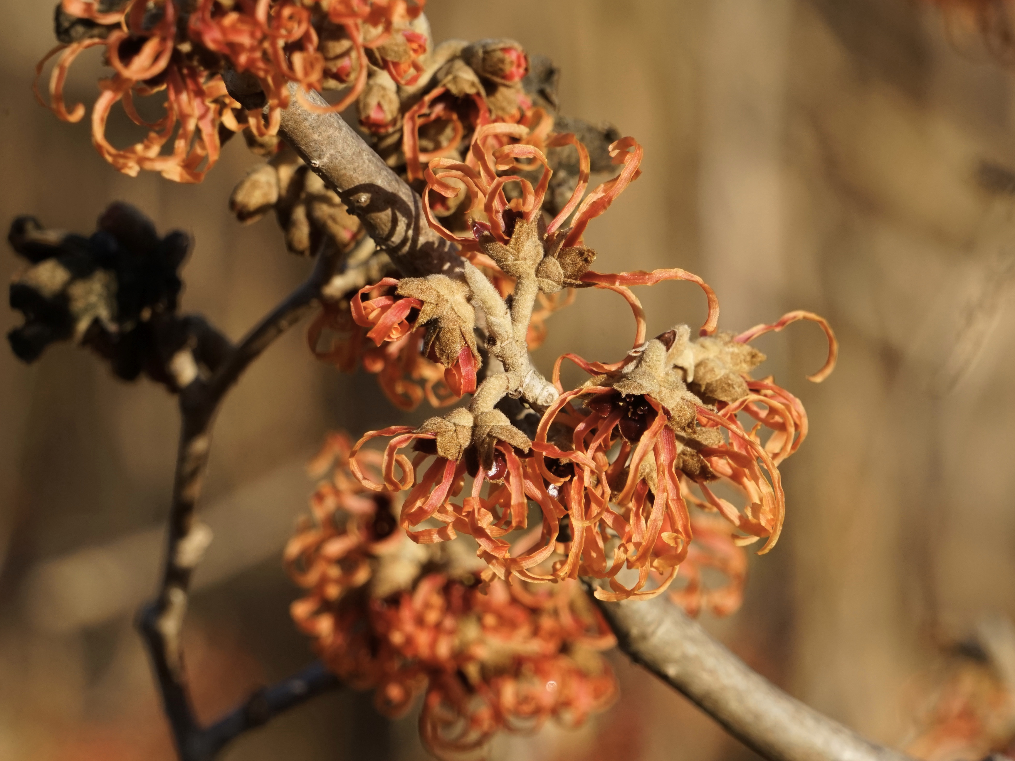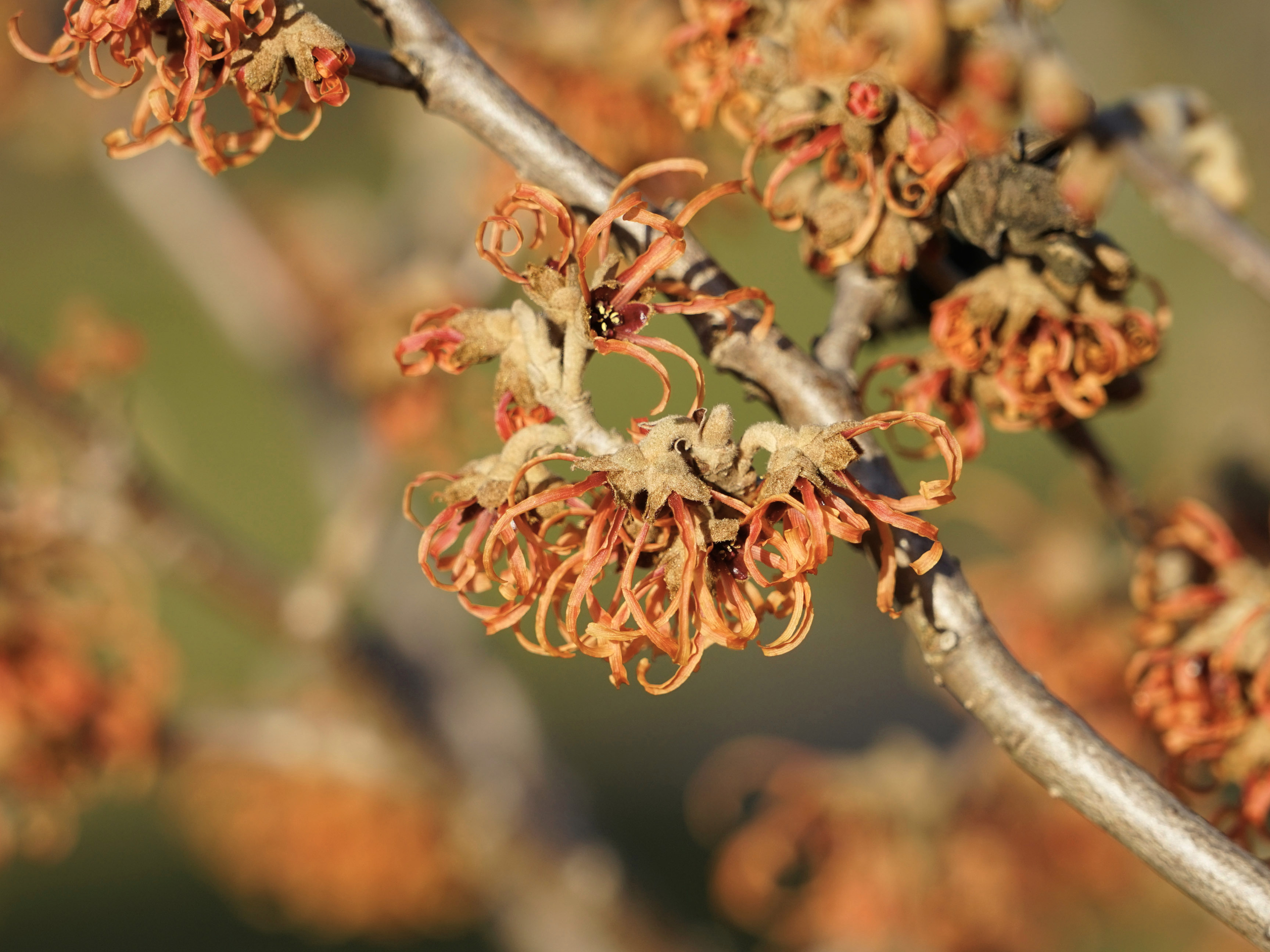 Zaubernussblüten in orange-rot