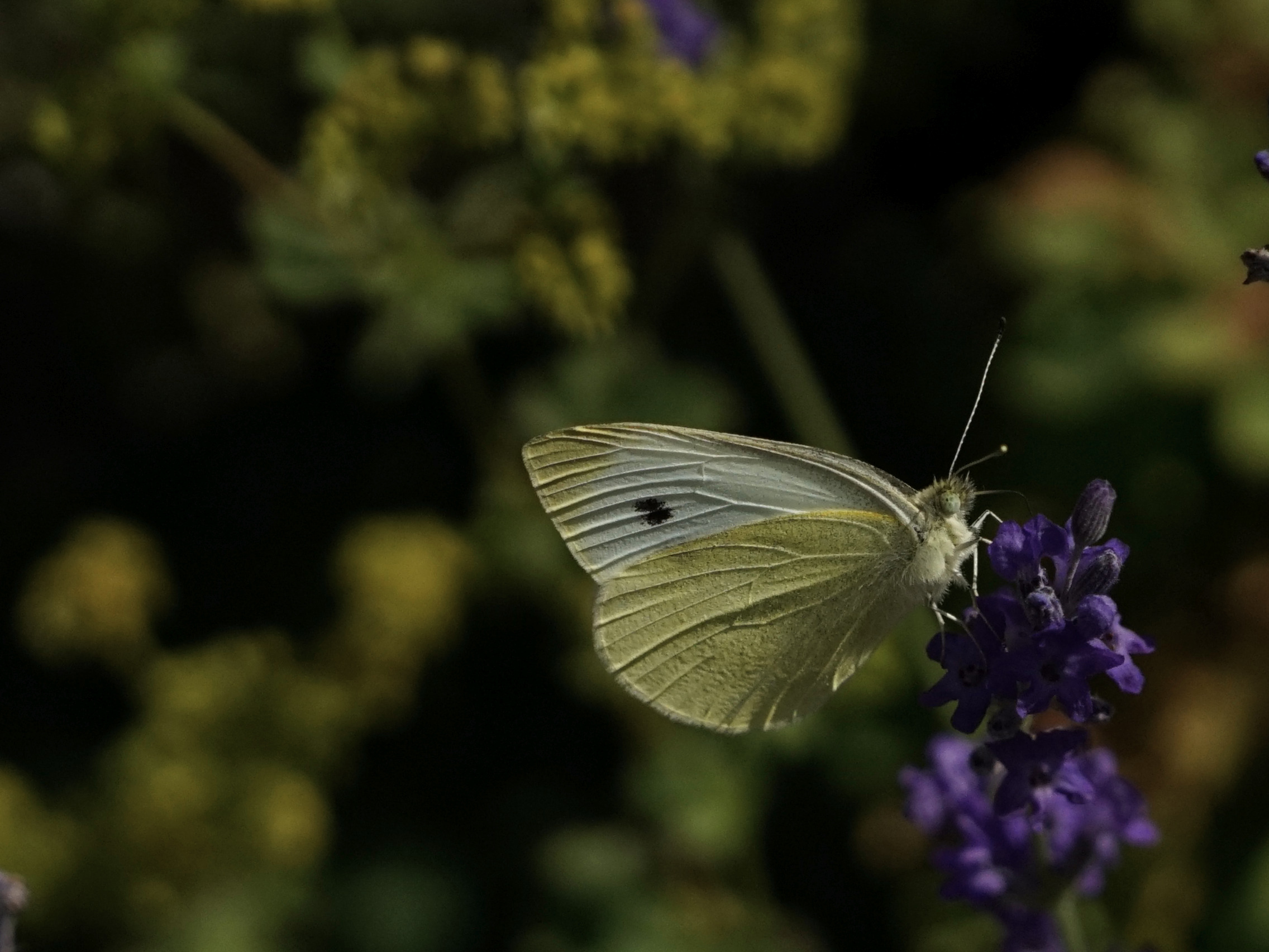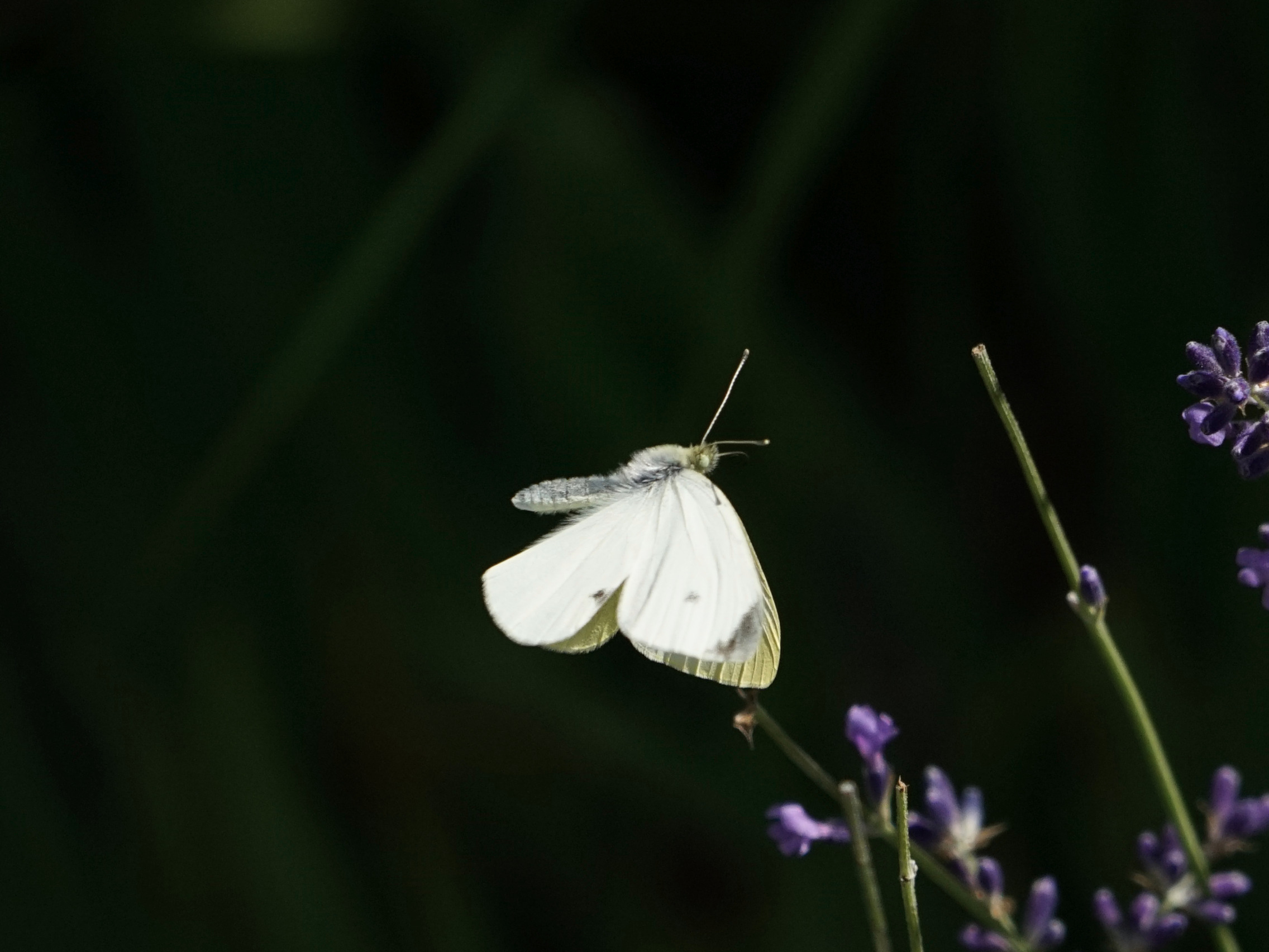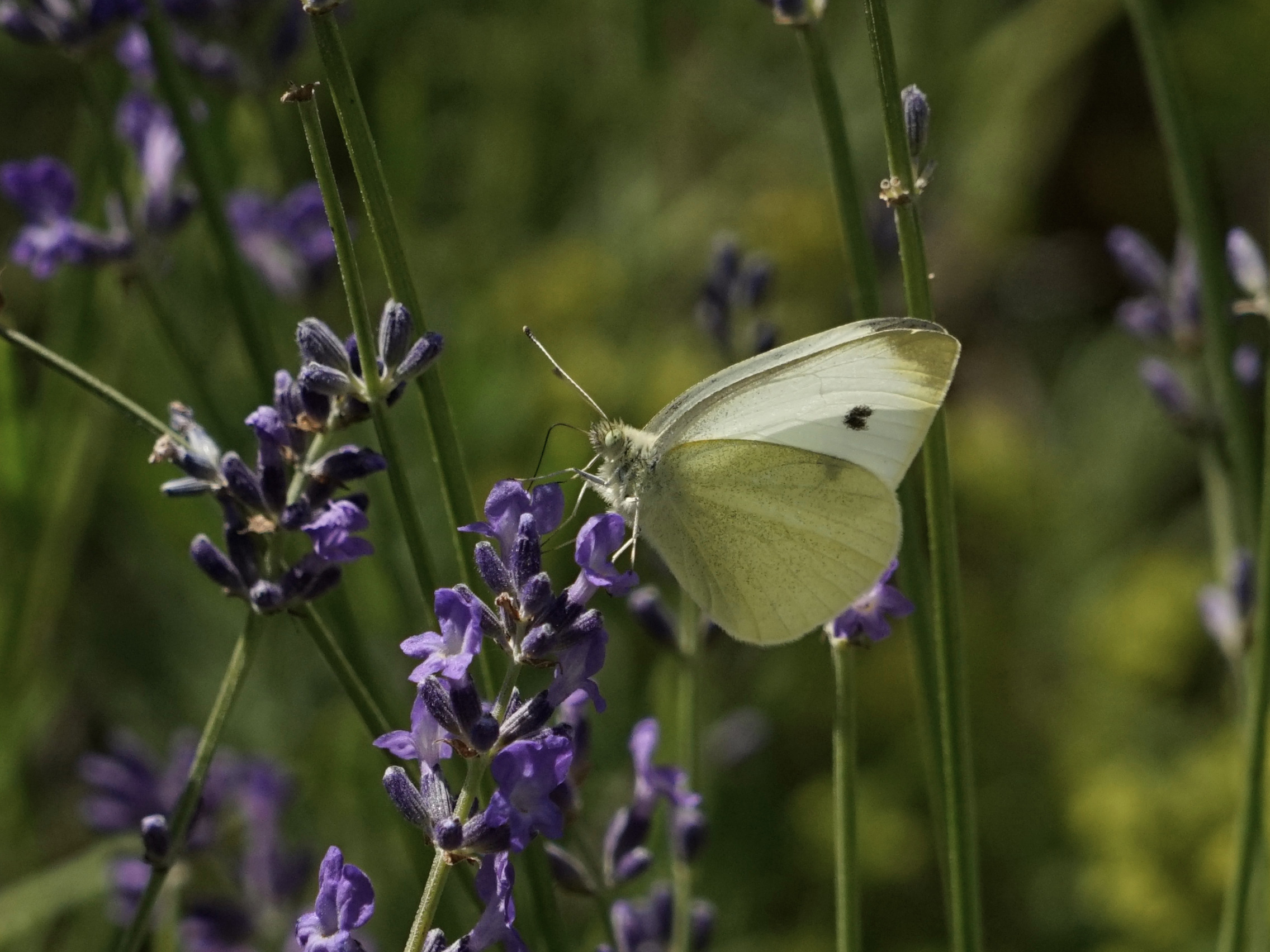 Kohlweißling beim Flug durch den Lavendel