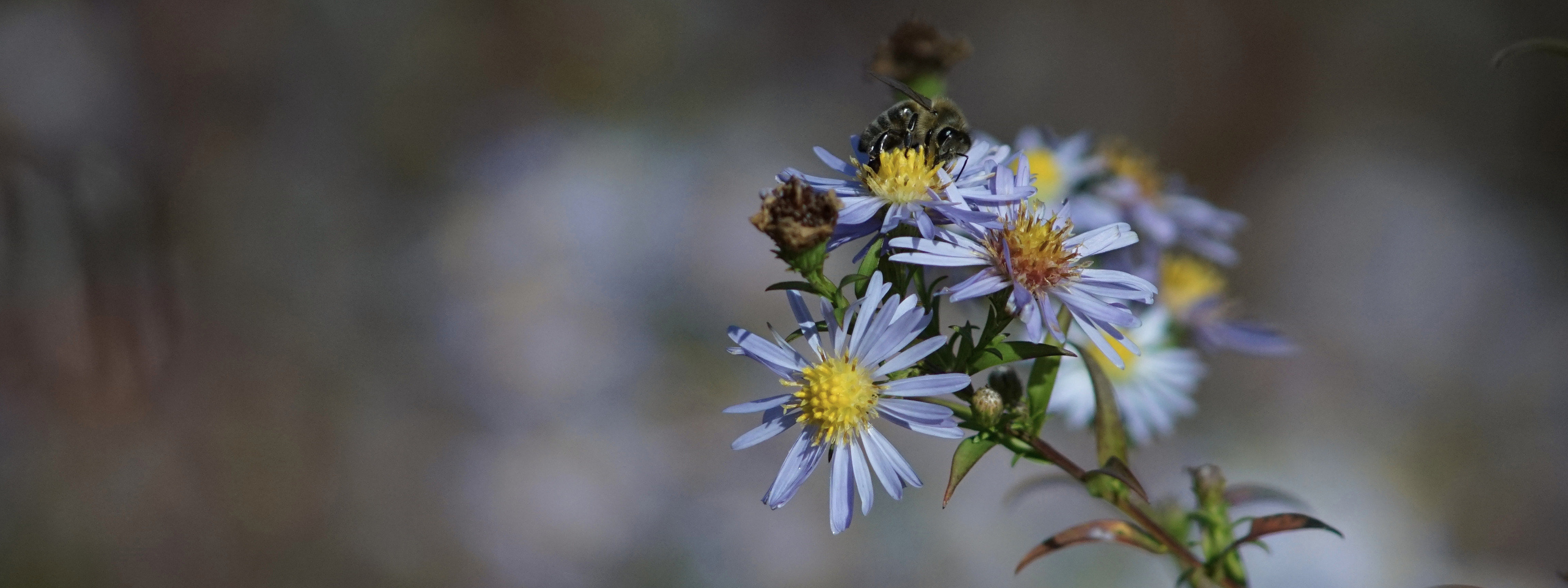 Biene im Herbst auf Aster Wallpaper 3840x1440