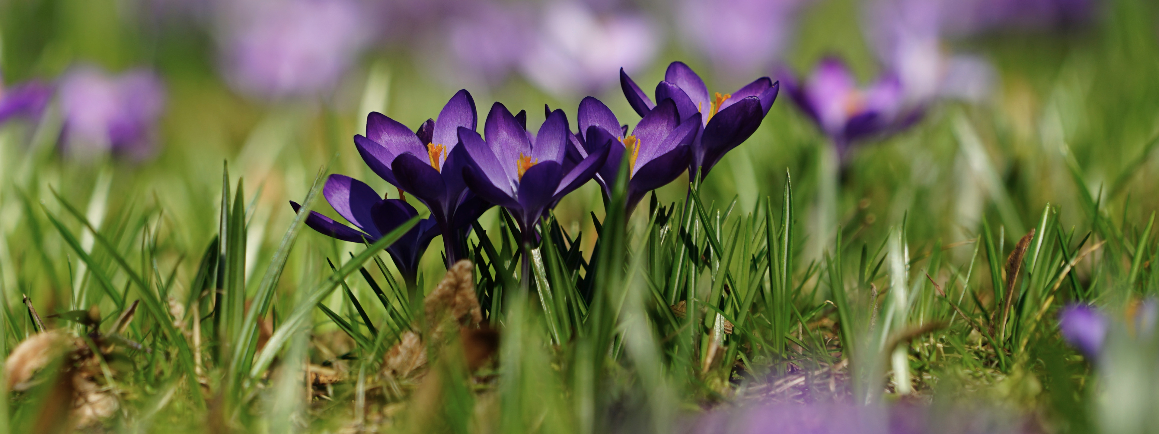 Krokusgruppe lila Wallpaper 3840x1440