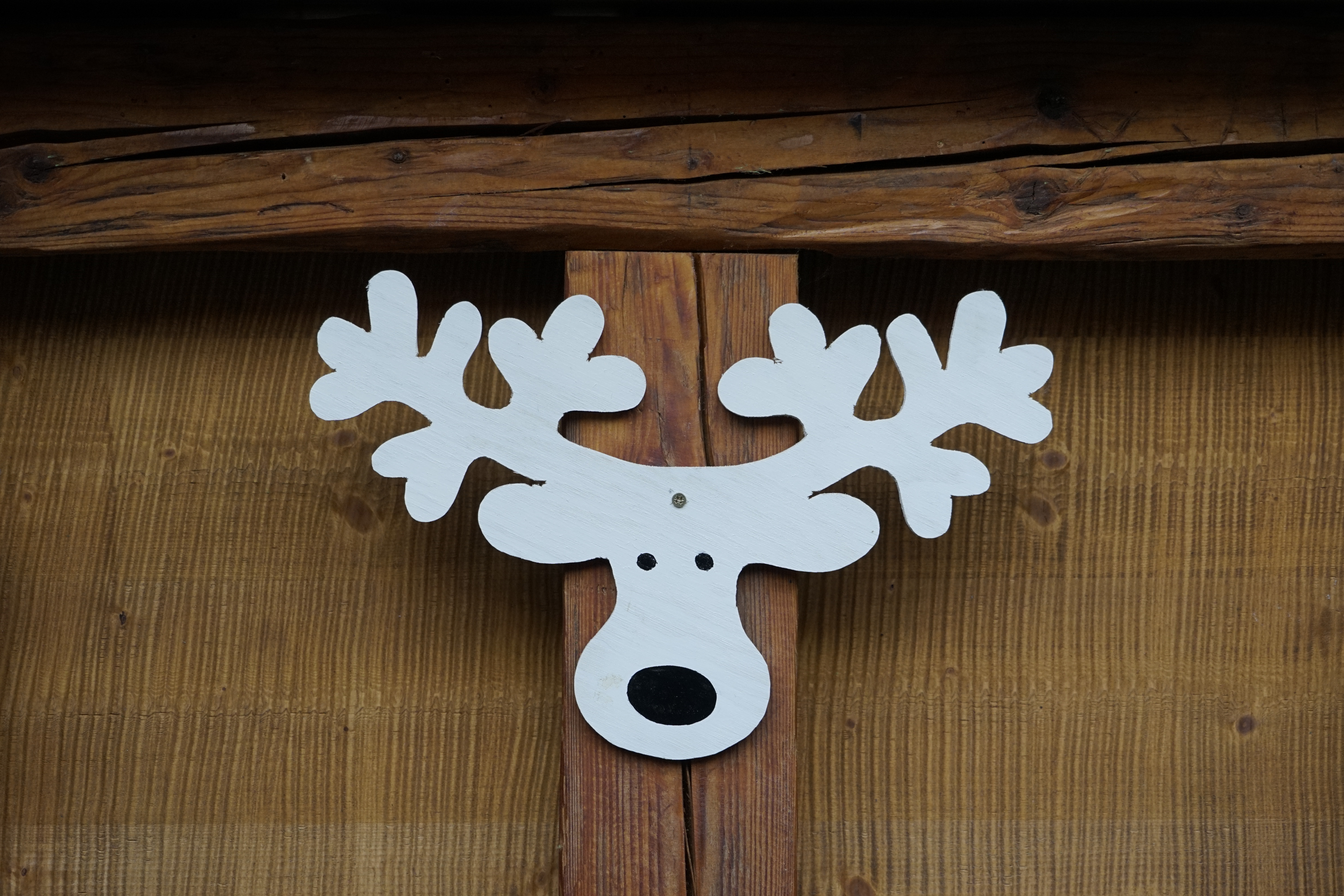 Holzrenntier an Weihnachtsbude Holzrenntier an Weihnachtsbude